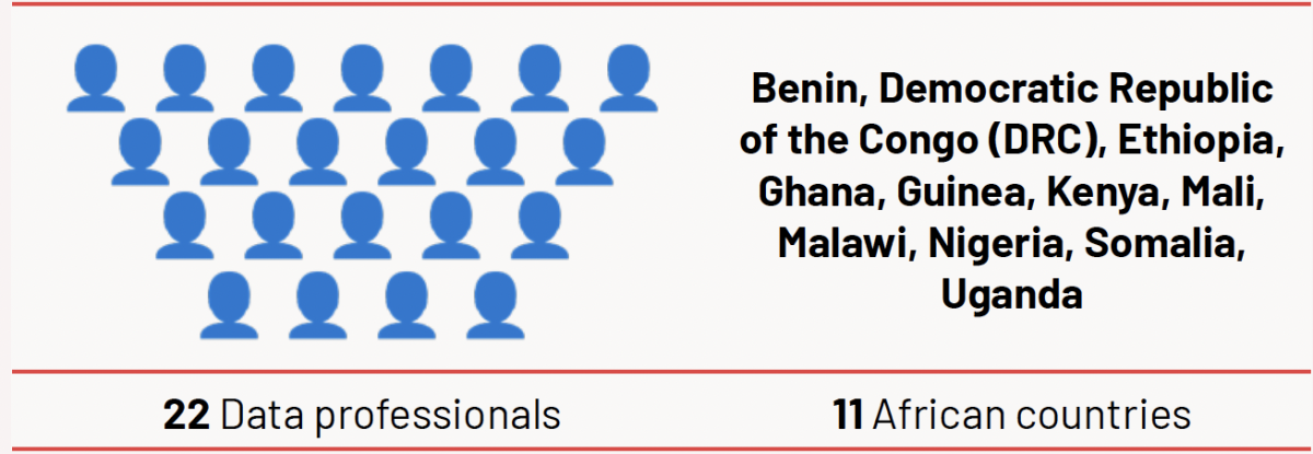 A total of 22 data professionals from 11 African countries were placed in paid data fellowships.