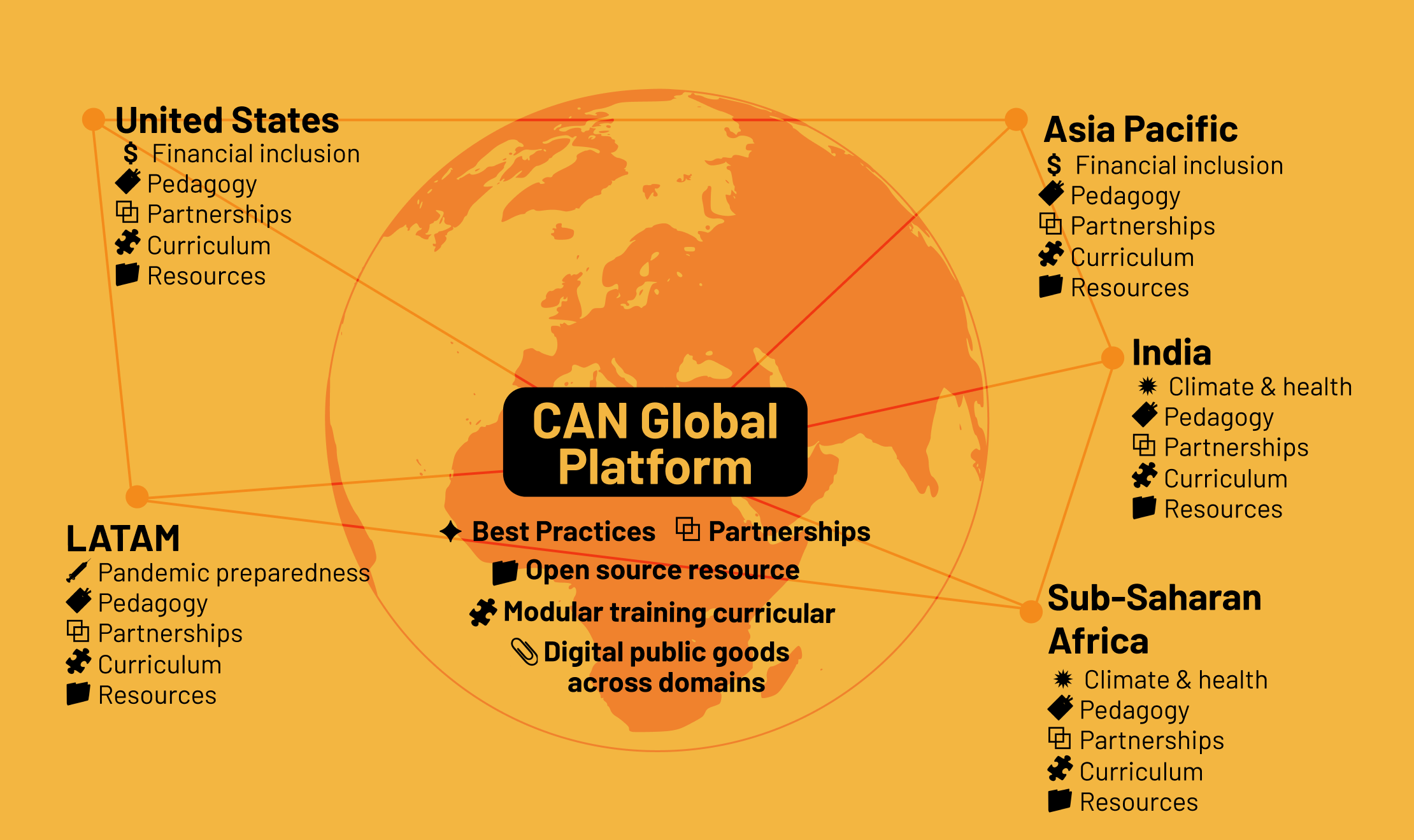 The Capacity Accelerator Network is a global “network of networks” conceptualized by data.org in 2020 to build data and AI capacity for social impact across regions. With active hubs in the United States, India, Latin America, the Asia Pacific, and Africa, CAN is reimagining how to equip a purpose-driven, future-ready workforce with the skills to address real-world challenges through data.
